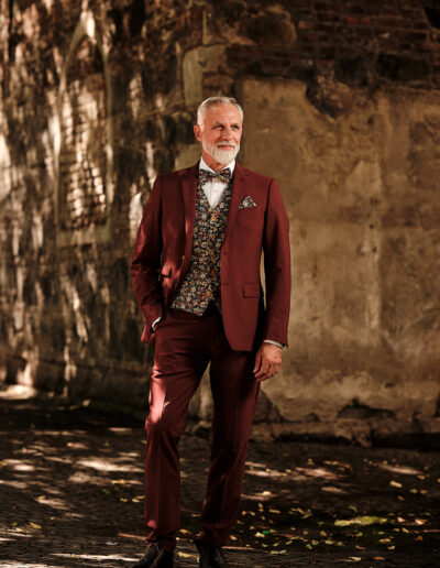 Mit einer eleganten Weste, einer stilvollen Krawatte oder einer Fliege lässt sich auch ein klassischer Anzug in einen festlichen Hochzeitslook verwandeln, der dem besonderen Anlass gerecht wird. Unser Tipp: Setzen Sie farbliche Akzente, die auf Ihre Hochzeitsfarben abgestimmt sind – beispielsweise auf Töne aus dem Brautstrauß oder der Hochzeitsdekoration.