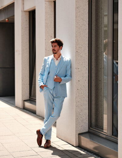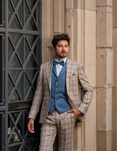 Ein vielseitiger Anzug bietet zahlreiche Kombinationsmöglichkeiten und begleitet Sie über den Hochzeitstag hinaus. Bei uns gestalten Sie Ihren Maßanzug ganz nach Ihren Vorstellungen: von Schnitt und Stoff bis hin zu individuellen Details wie Ärmeln, Taschen oder Revers.