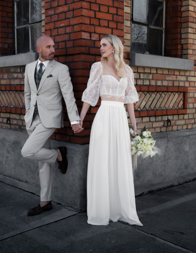 Ob harmonisch aufeinander abgestimmt oder bewusst unterschiedlich – gemeinsam entwickeln wir Looks, die Ihre Verbindung unterstreichen. Sie wählen Schnitt, Stoff, Farbe und Details ganz nach Ihren Vorstellungen.